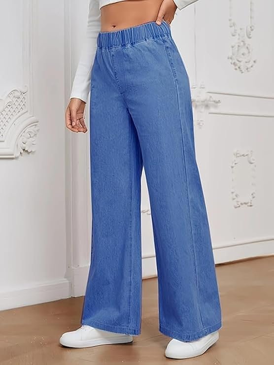 ADBUCKS Women’s Stretch Denim Wide Leg Jeans Comfort Fit with Elastic Waistband, Straight Cut, Casual Style for All Seasons, Versatile Clothing