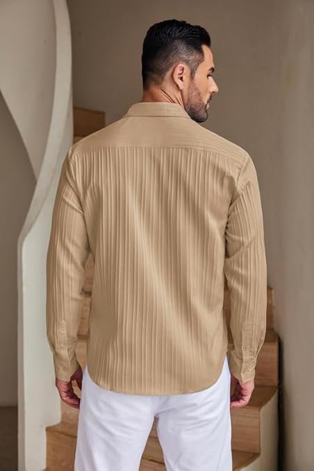 DEELMO Combo of Men’s Casual Button Down Shirts Long Sleeve Linen Shirt Fashion Textured Summer Shirts Pack of 2